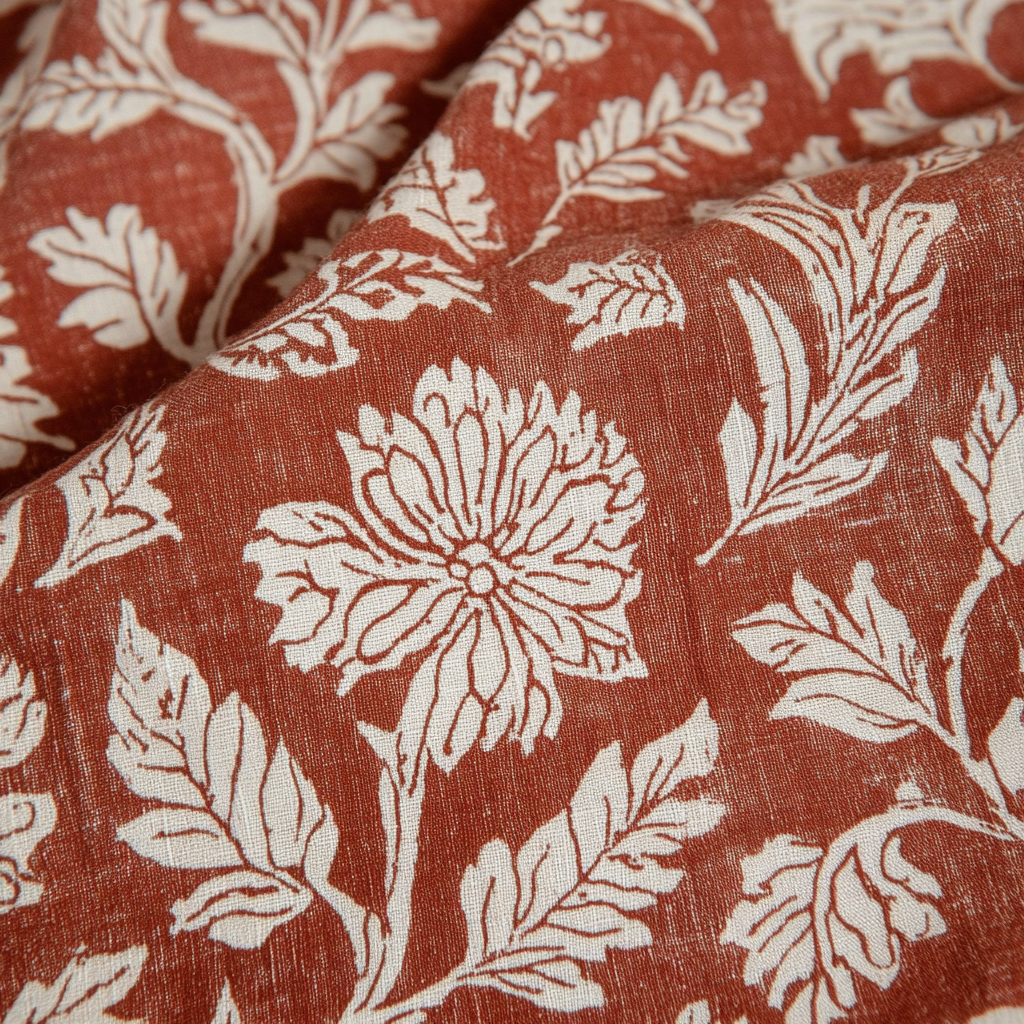 Each set begins as soft cotton, waiting to be transformed. The blocks are carved, the dyes prepared, the fabric laid flat.