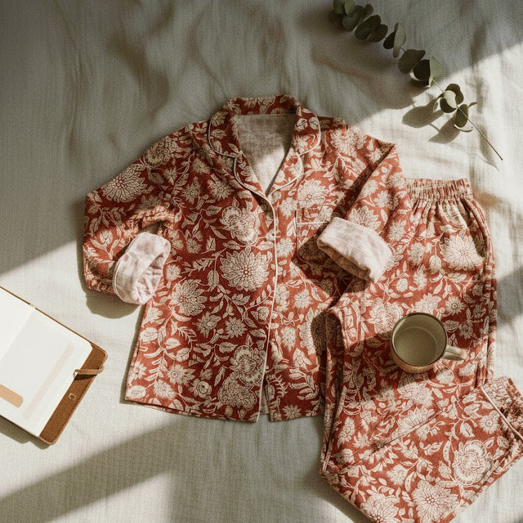 The kind of sleepwear that makes you look forward to evening. Soft cotton that gets softer with every wash, made one set at a time.